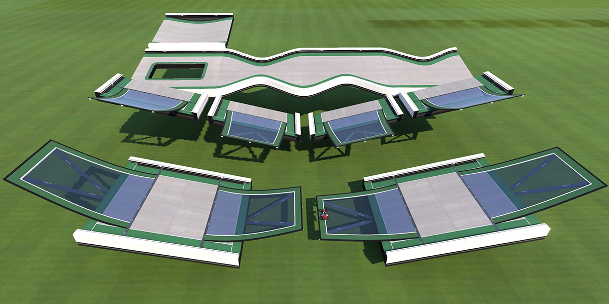 It also contains all pieces, including ramps in uphill/downhill and banked variants.