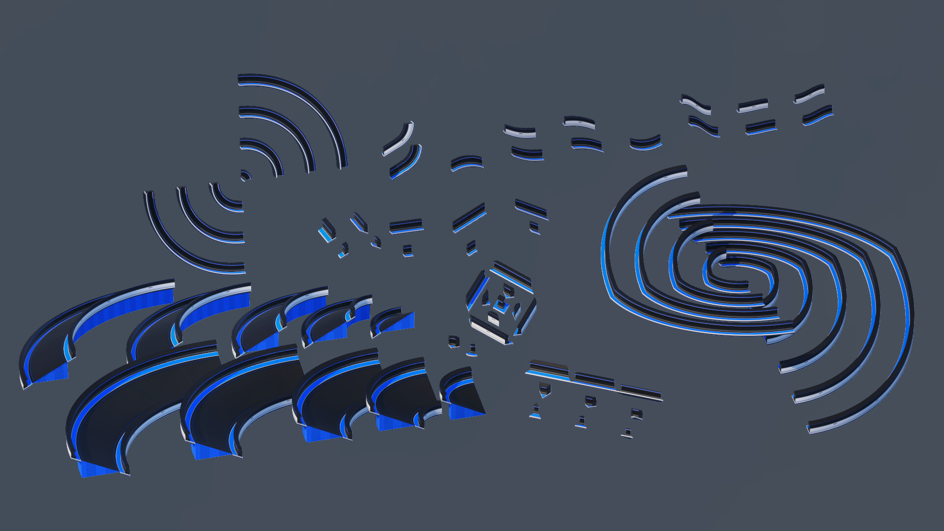This set also contains various platform extensions for curves and corners - sloped and flat for all surfaces