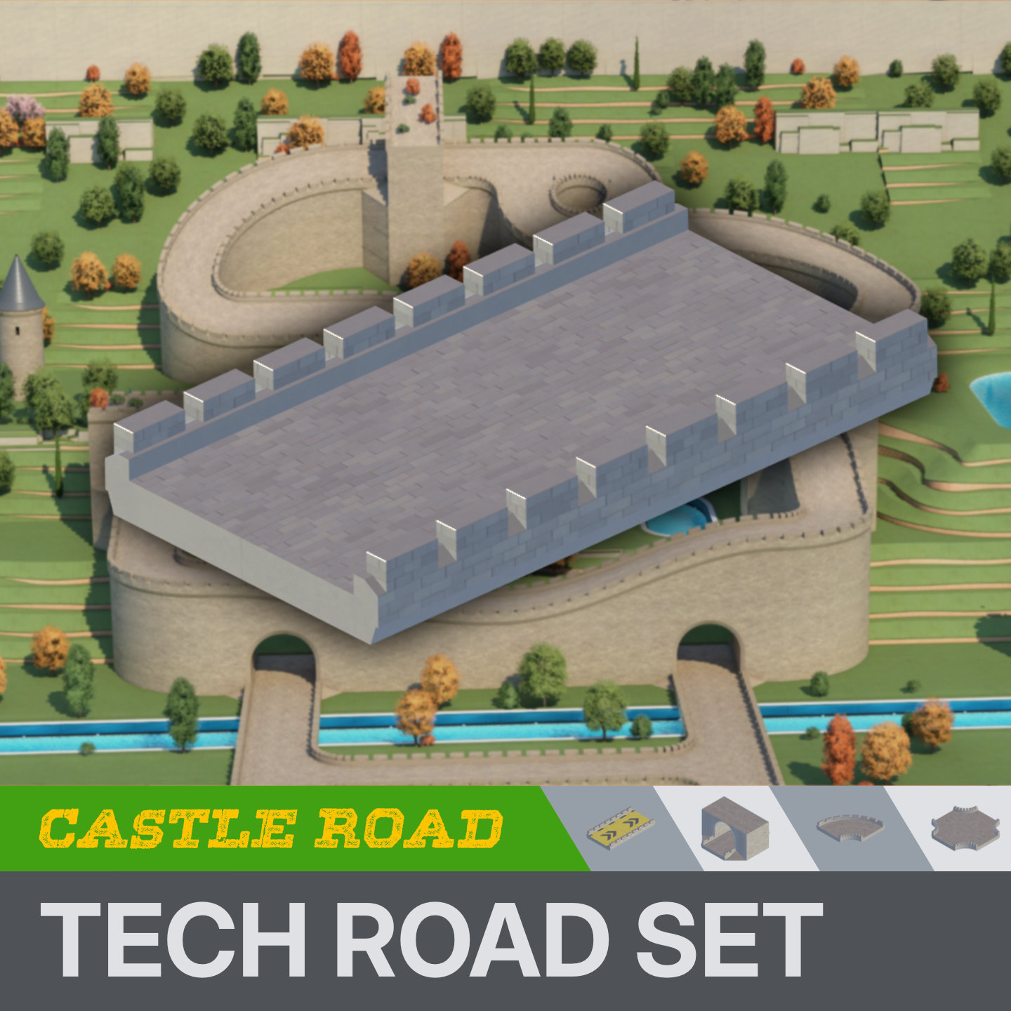 A set of castle blocks with smooth tech/asphalt surface, inspired by the Snow and Rally environments.